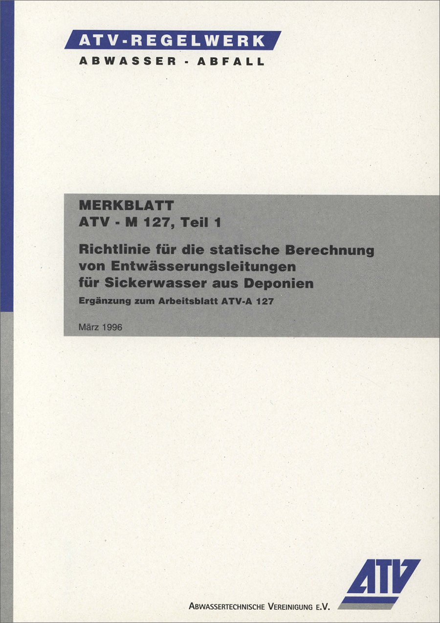 ATV-M 127-1 - Teil 1: Richtlinie für die statische Berechnung von Entwässerungsleitungen für Sickerwasser aus Deponien -