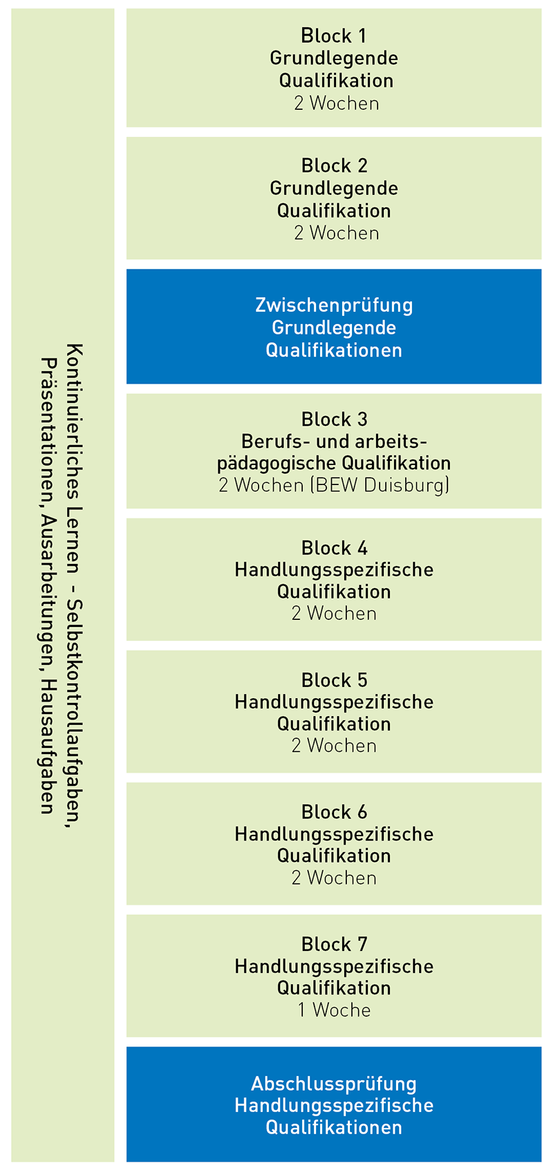 Im zweiten Jahr beinhaltet die handlungsspezifische Qualifikation fünf Blöcke mit sieben Wochen Präsenzunterricht.