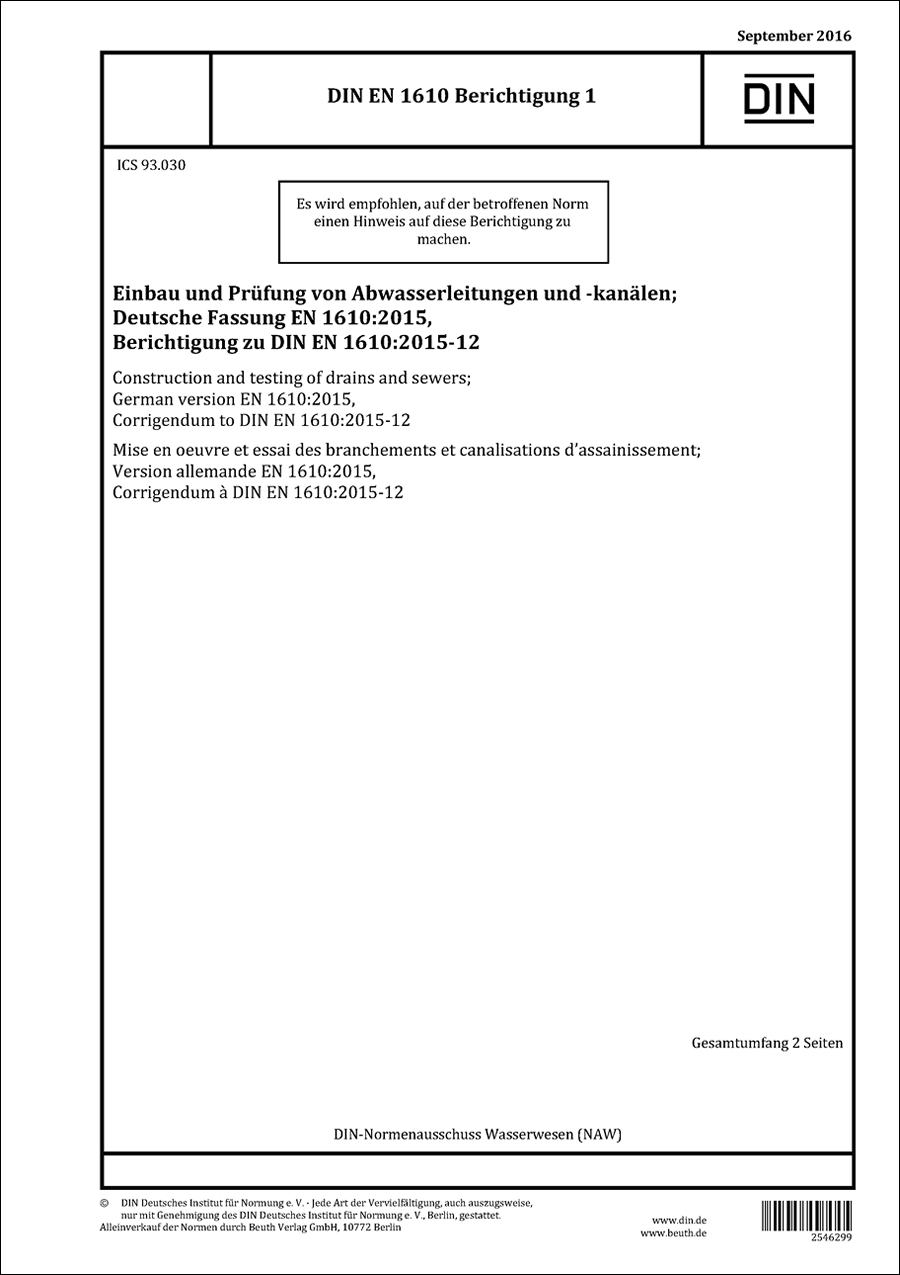 DIN EN 1610-16 Ber 1